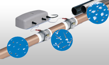 Принцип на действиеAqua 2000 се монтира на входящата тръба на водата. Там устройството генерира електростатично поле между полюсите. Полето пулсира между 7000 Hz и 14 000 Hz. Когато водния поток премине през полето, съществуващите железни частици се активизират с висока скорост, които разграждат варовика и предотвратяват отлагането на котлен камък. Електростатичното поле е винаги на 100% ефективно.